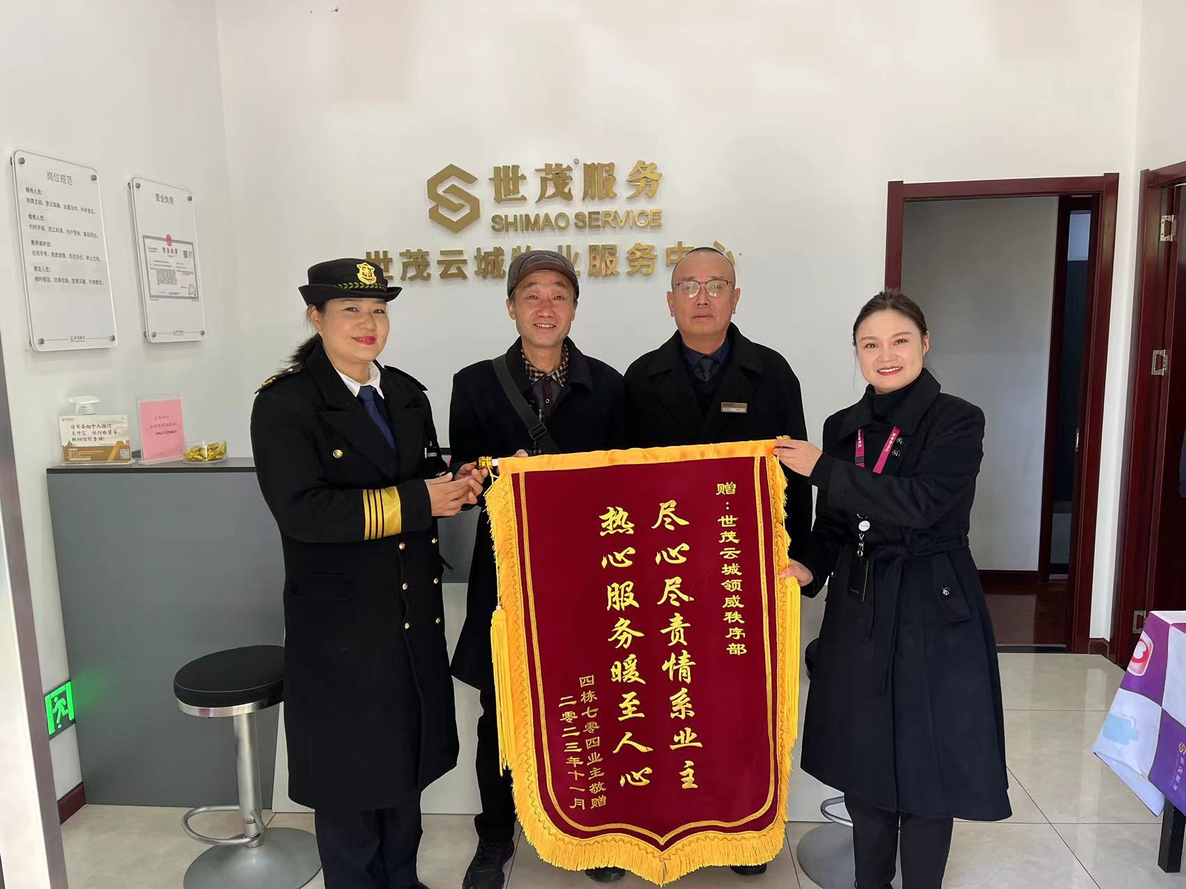 2023年11月,荊州世茂云城一戶業(yè)主特意來到小區(qū)物業(yè)中心,激動地將一面錦旗送到領(lǐng)威保安員李容的手中,錦旗上面寫著“熱心服務(wù)暖至人心,盡心盡責(zé)情系業(yè)主”,這是對領(lǐng)威保安公司熱心幫助和盡職盡責(zé)的極高評價。